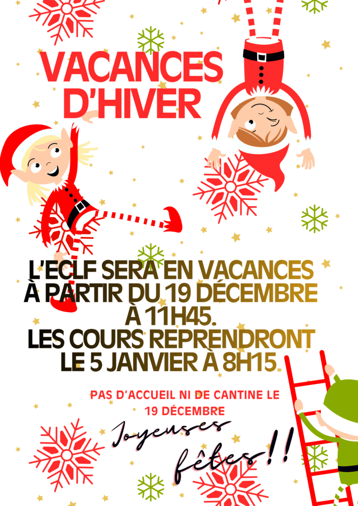 Le 16 février 2026, le personnel de l’ECLF sera en formation toute la journée. La cantine et l’EJC seront fermés. Tous les enfants auront donc congé.